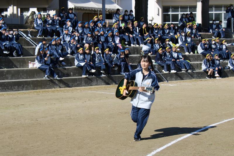 1クラス3グループに分かれ、体育の授業で選曲・振り付け・練習を行い、抽選で決まった順番で練習の成果を発表しました。昨年度までは学年ごとの発表でしたが、今年度は初めて全校で行い、大いに盛り上がりました。